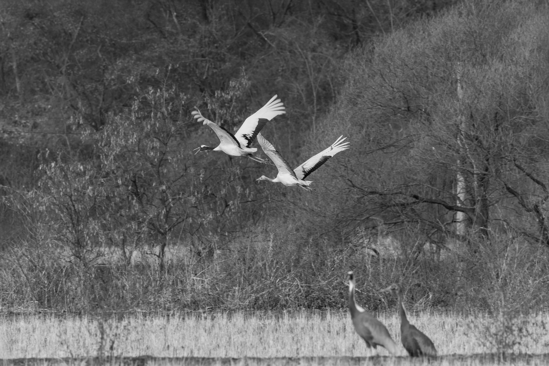 두루미 부부가 멋지게 날아 가고 있습니다