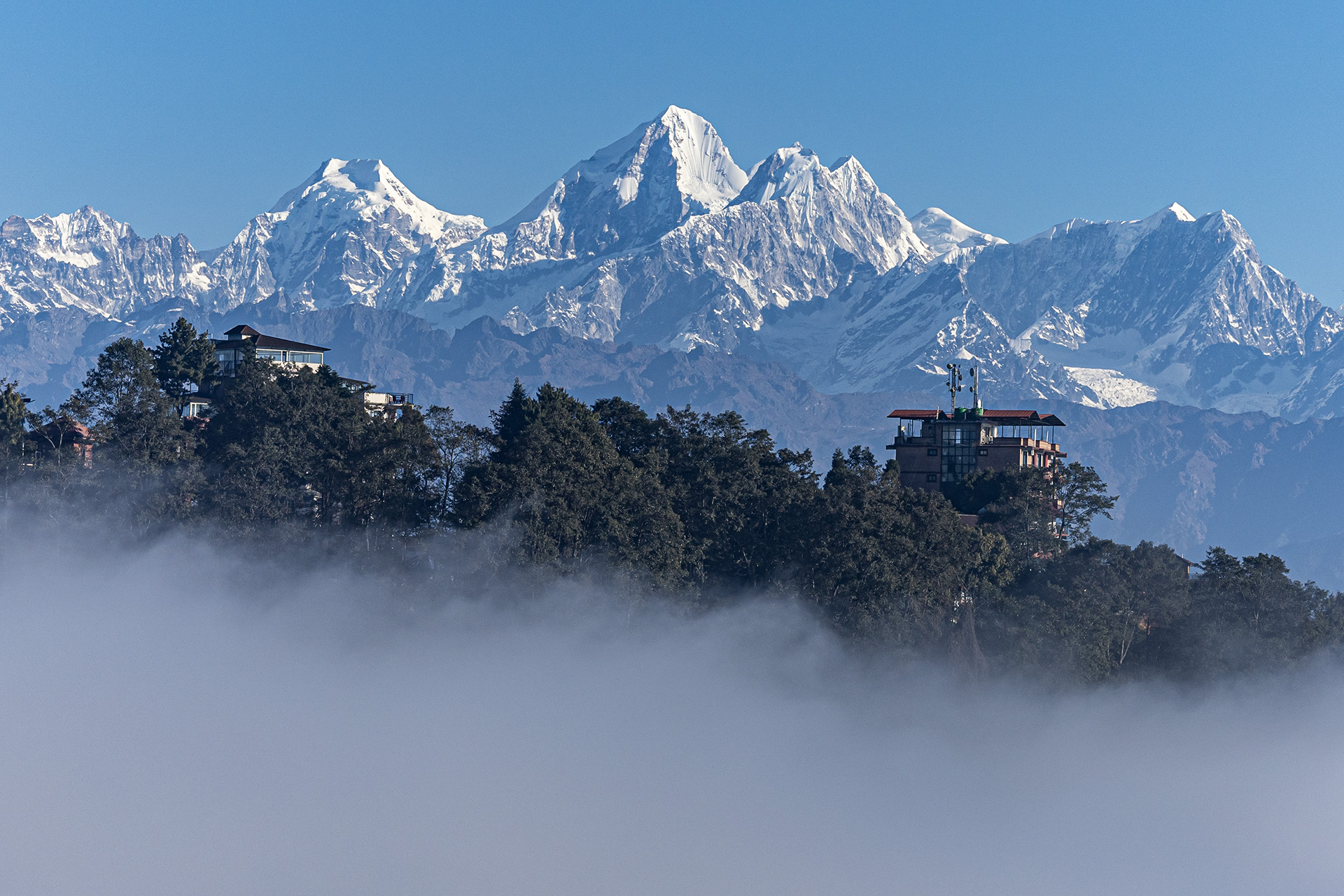 나갈곳 호텔 옥상에서 본 운무 와 에베르스트 히말라야 산맥
