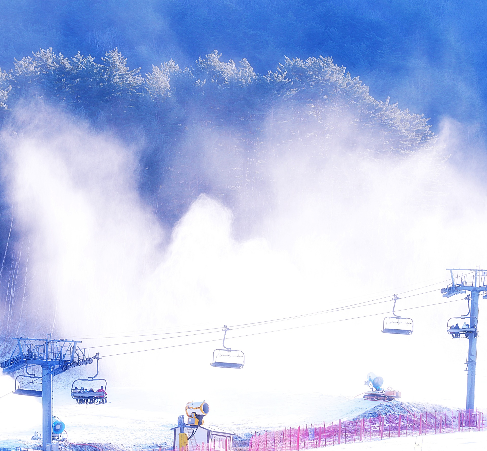 인공 제설기가 하늘을 향해