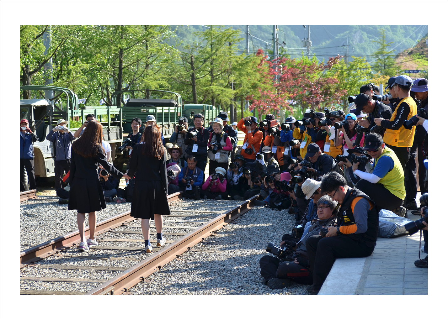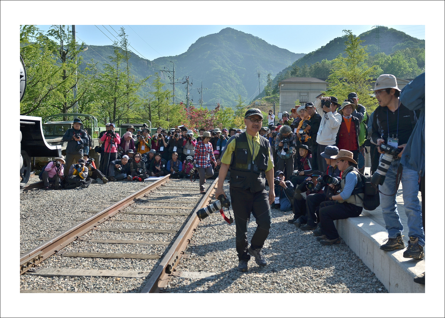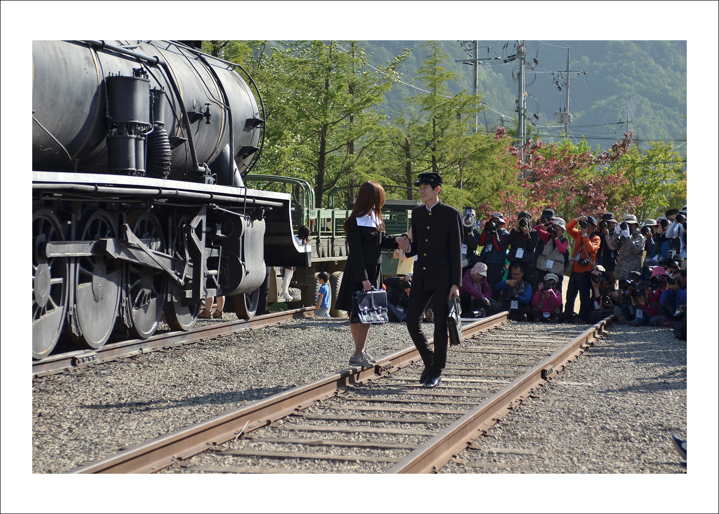 -.촬영 열기가 치열한 기차 레일위..