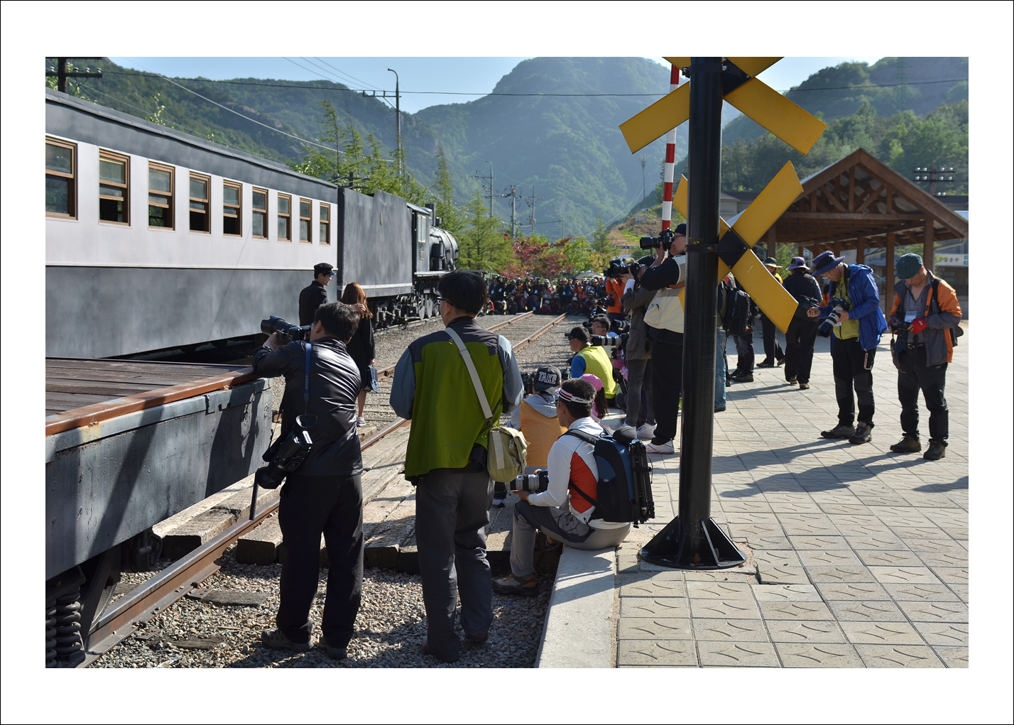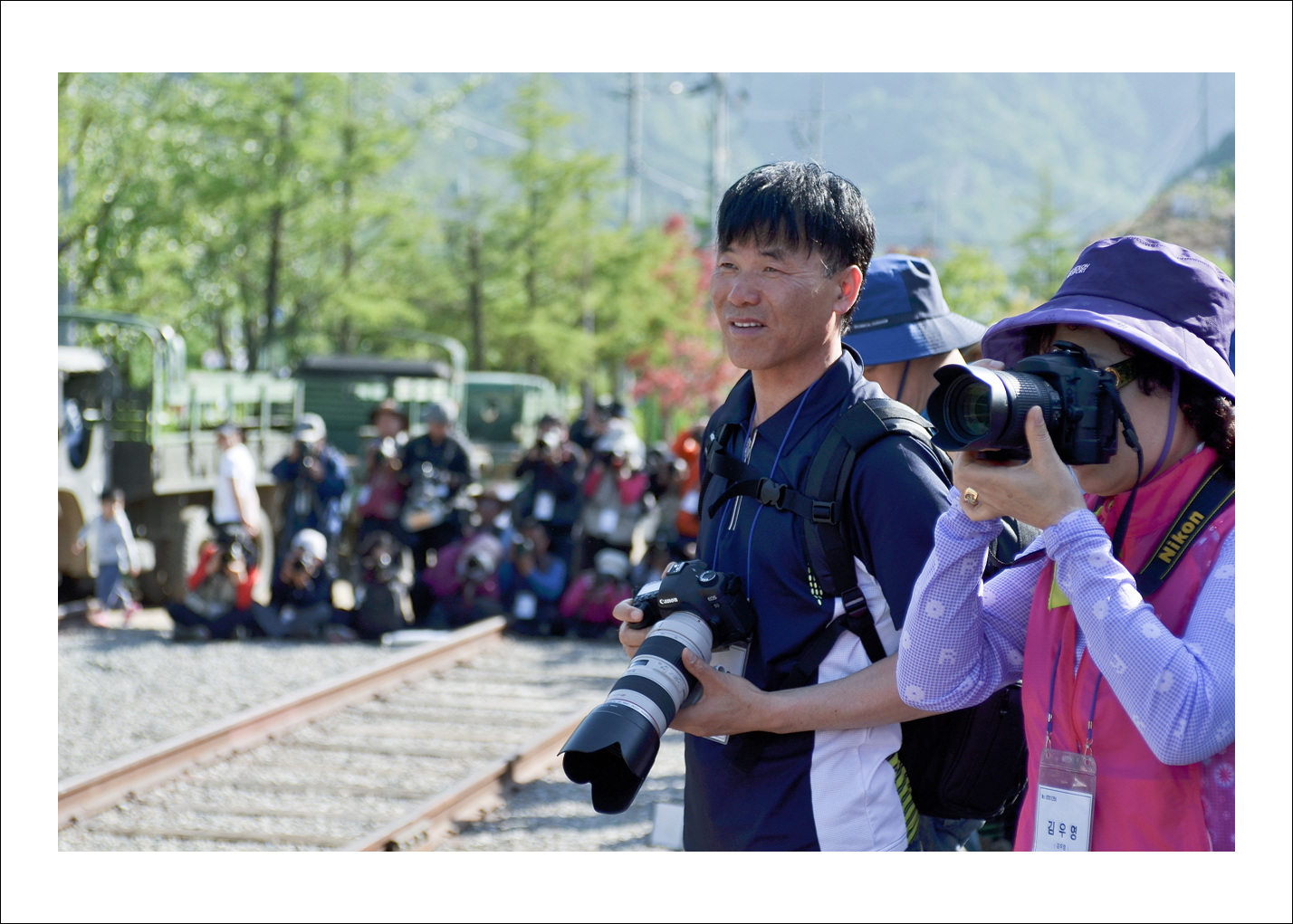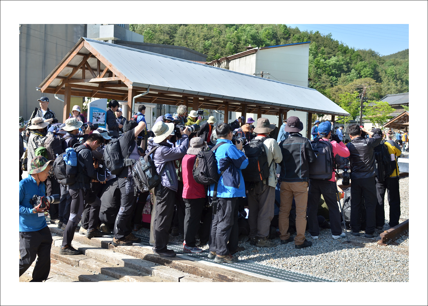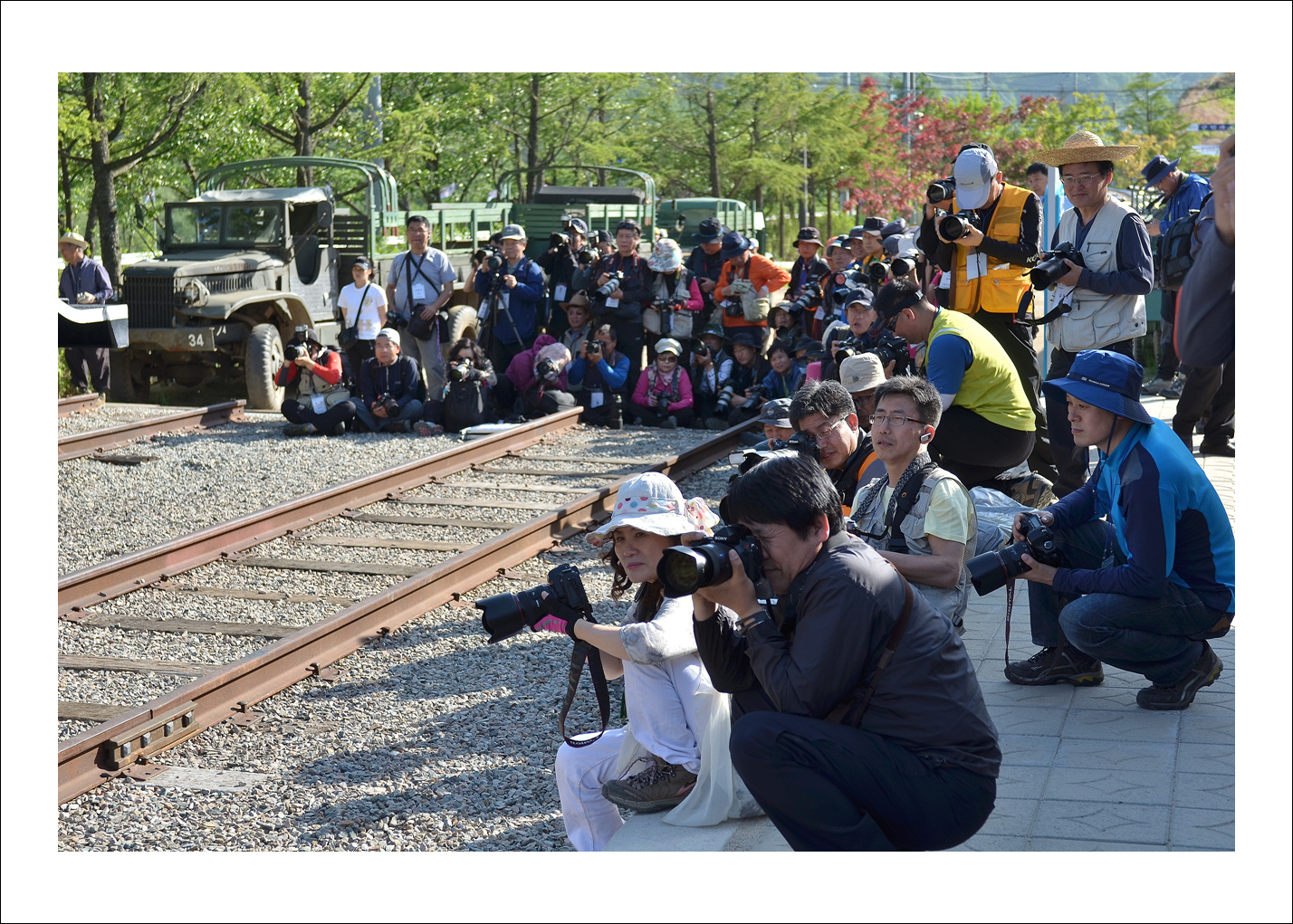 -.촬영 열기가 치열한 기차 레일위..