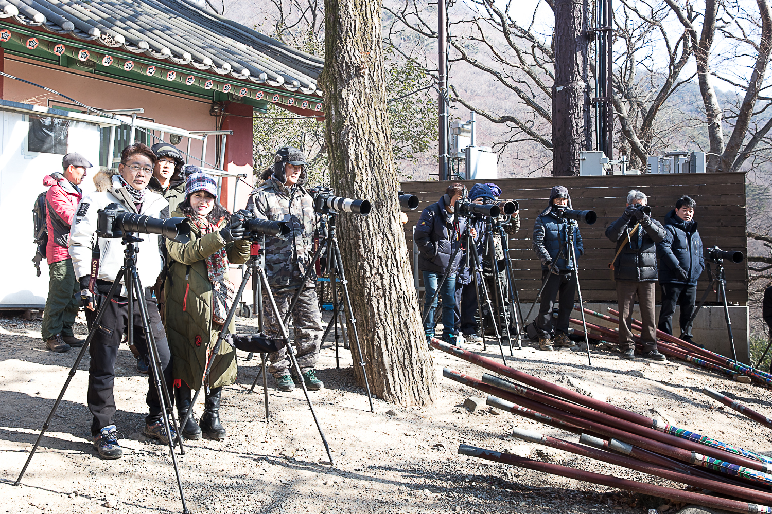 추운날 2018년 2월 3일 부산범어사에서 새잡았습니다.