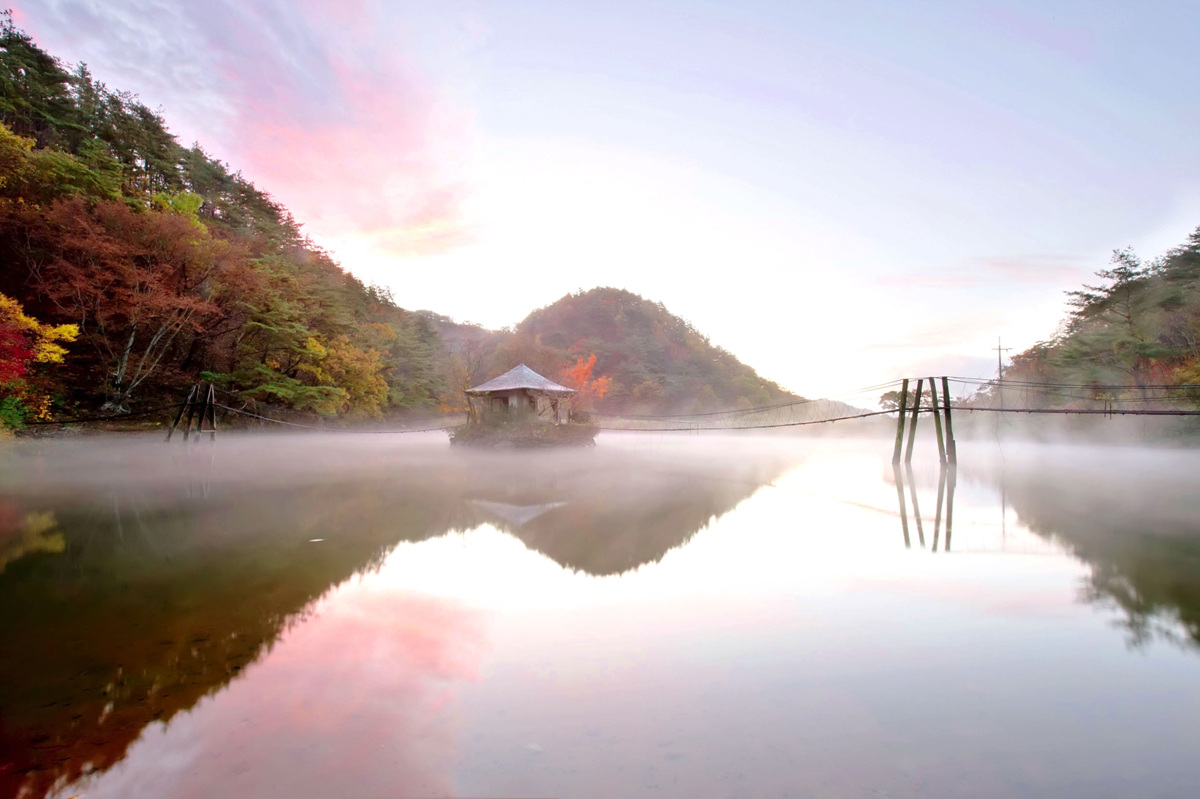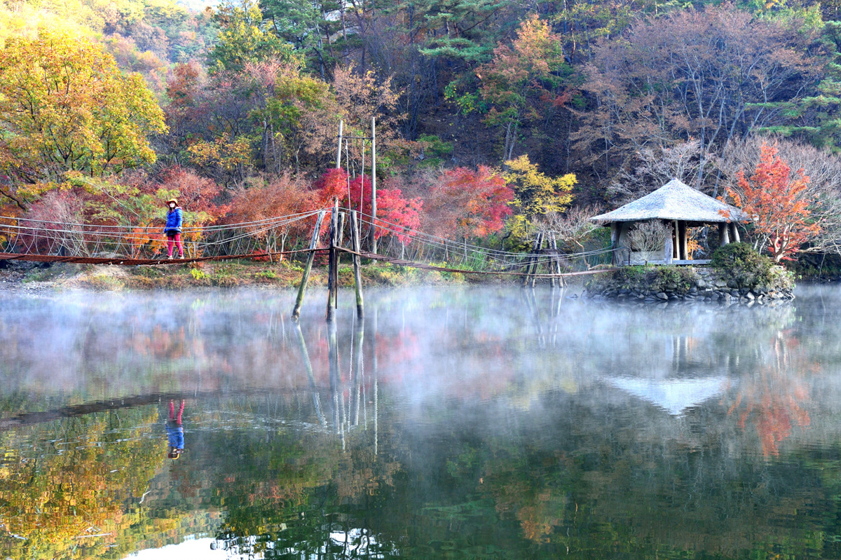 물안개와 안개가 어우러져 환상의 분위기를 만들어 낸다.