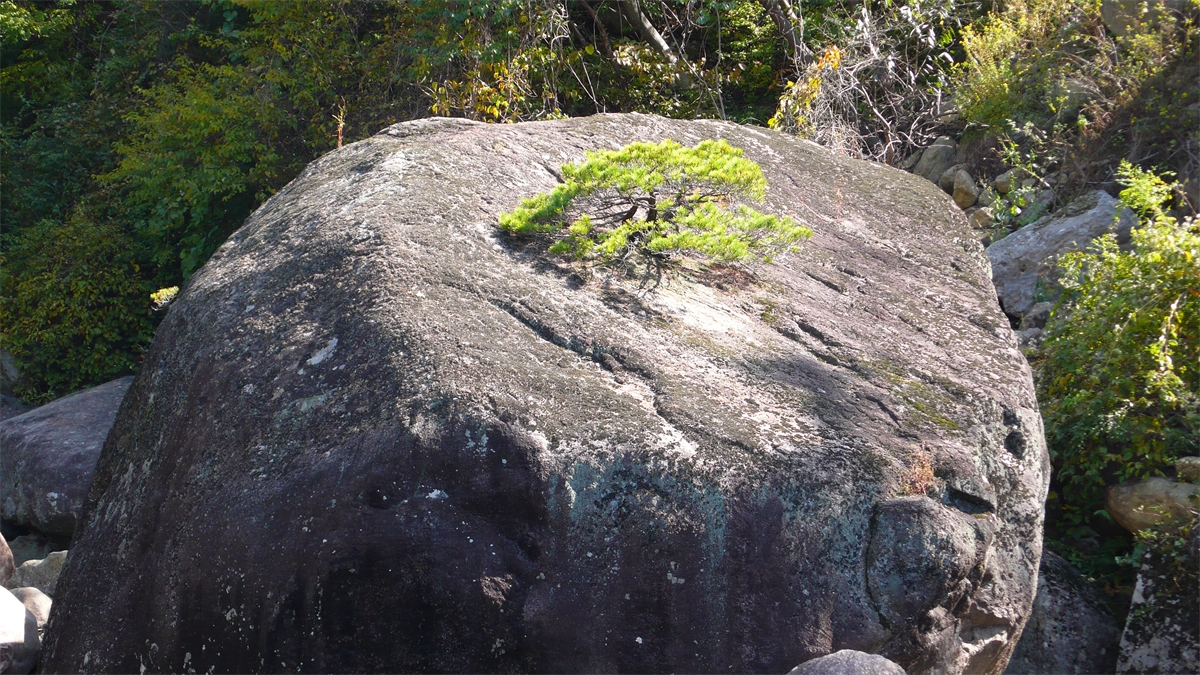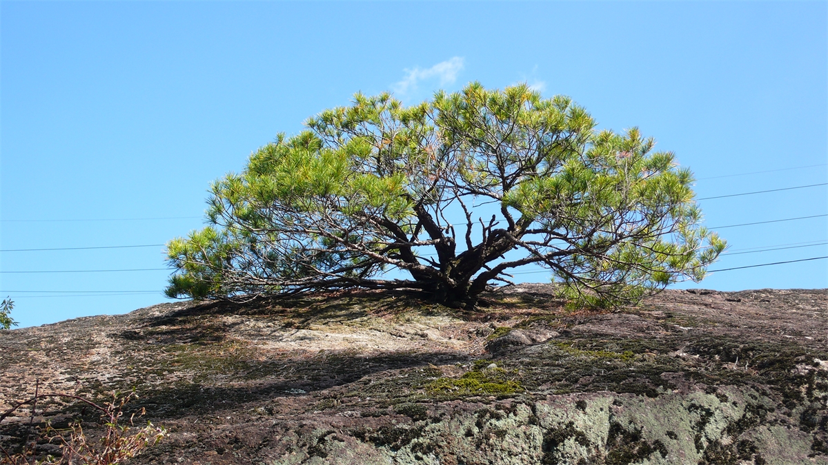 바위위에 끈질기게 살아 있는 소나무