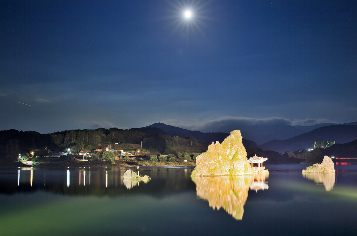 추석 전 보름달과 도담삼봉