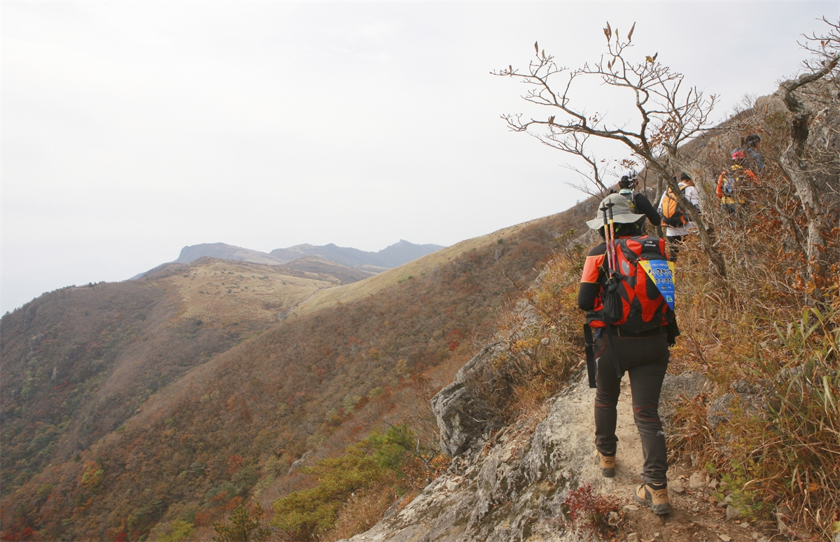 신불산을 산행하는 산악인