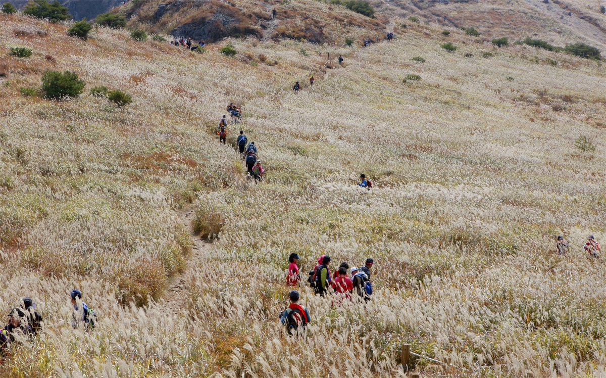 억새사이로 여행꾼들로 장관을이룬다.