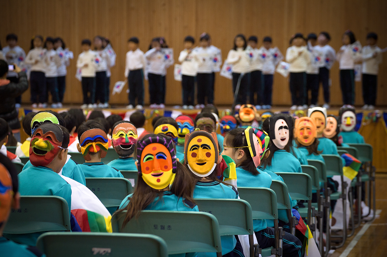 - 늦둥이 학예발표회하는날 탈춤 대기중인 초등학생들의 탈의 표정~
