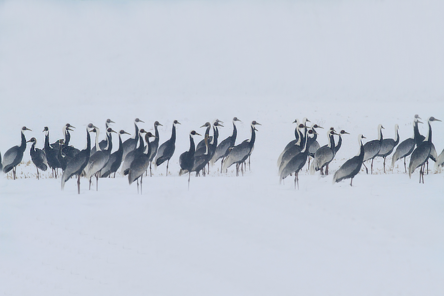 눈내리는 들판의 재두루미들.....