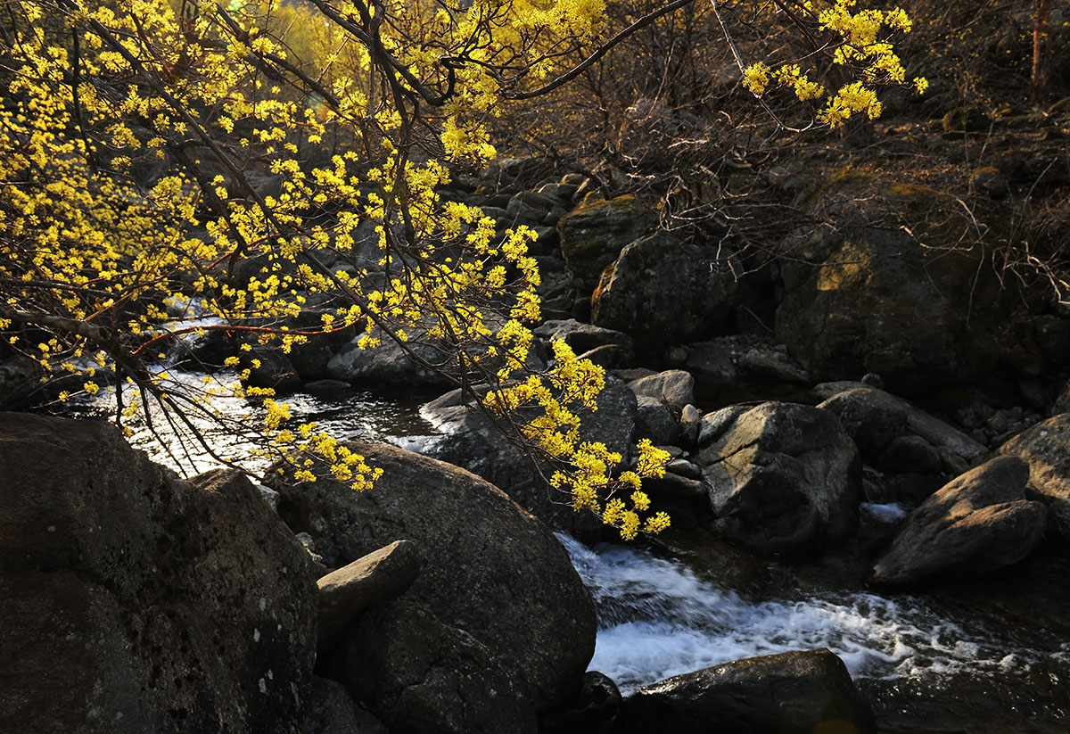 봄은 깊은 산골 물흐르는 소리에 산수수유는...