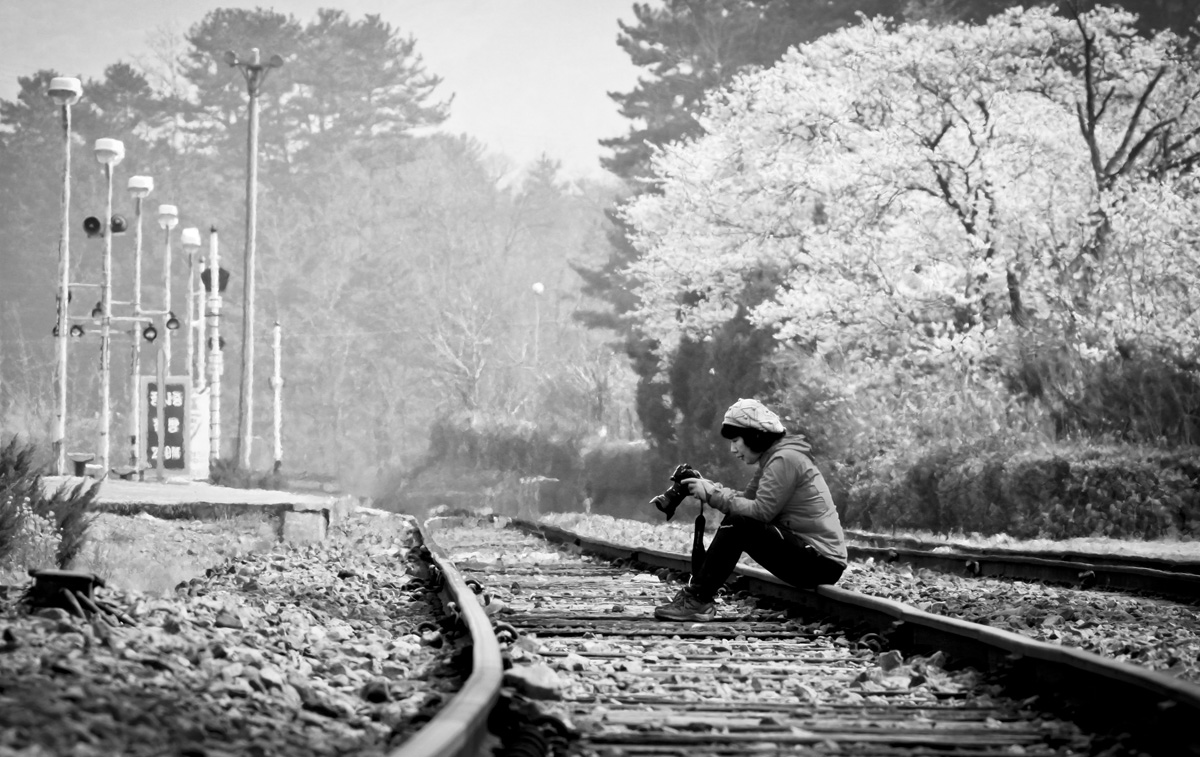 오지않는 열차를 기다리는 여인..