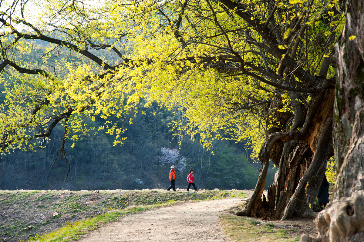 고목의 아래 아름다운 동행...