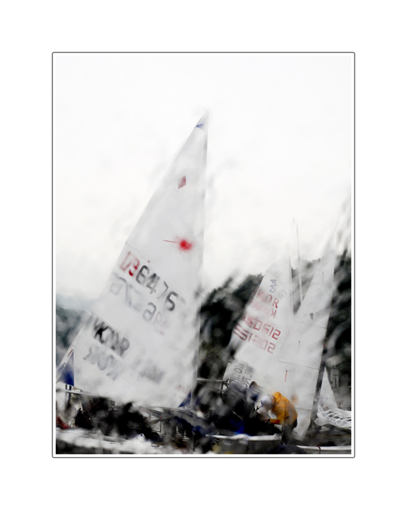 요트경기에 출전하기 위해 준비를 하고 있다.