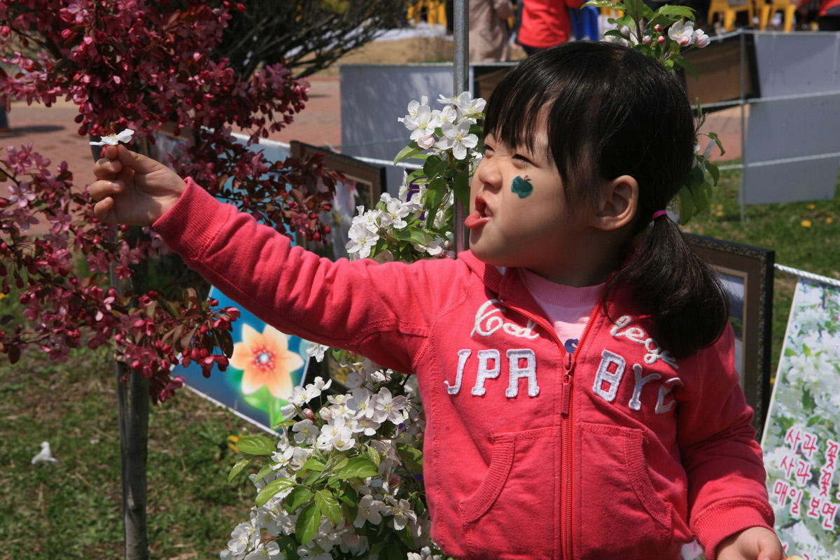 영주 사과꽃따기 체험행사장...