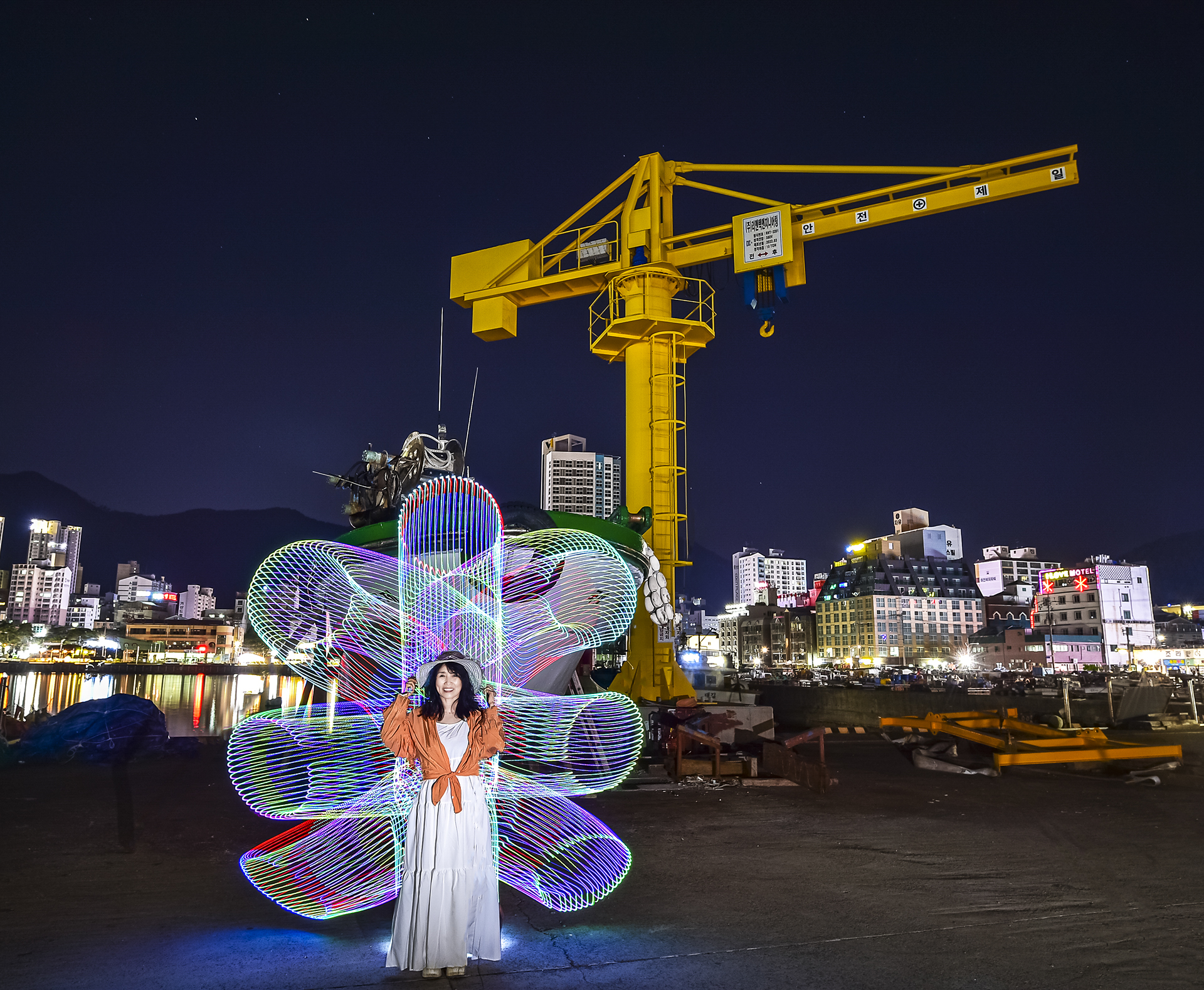 남편의 어설픈 모델이 되어서 동네 선박을 배경으로