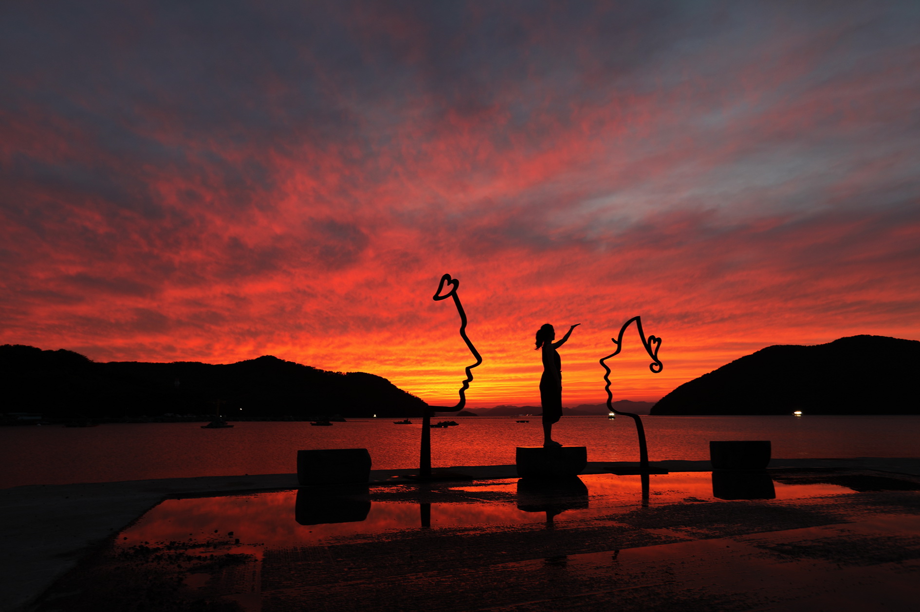 거제도 덕곡항 여인의 입술과 여인의 실루엣