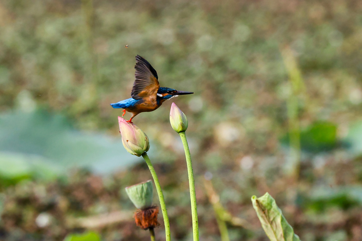 주남 동판지 연밭에서 물총새가 먹이 활동을 하고 있다.