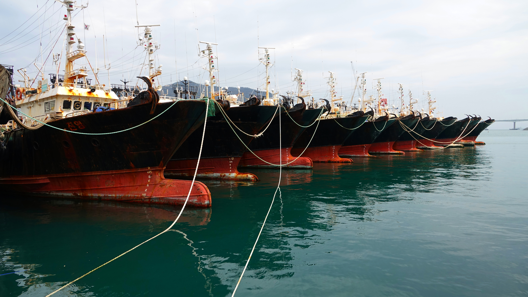 자갈치 시장 항구에 정박된 배들의 모습을