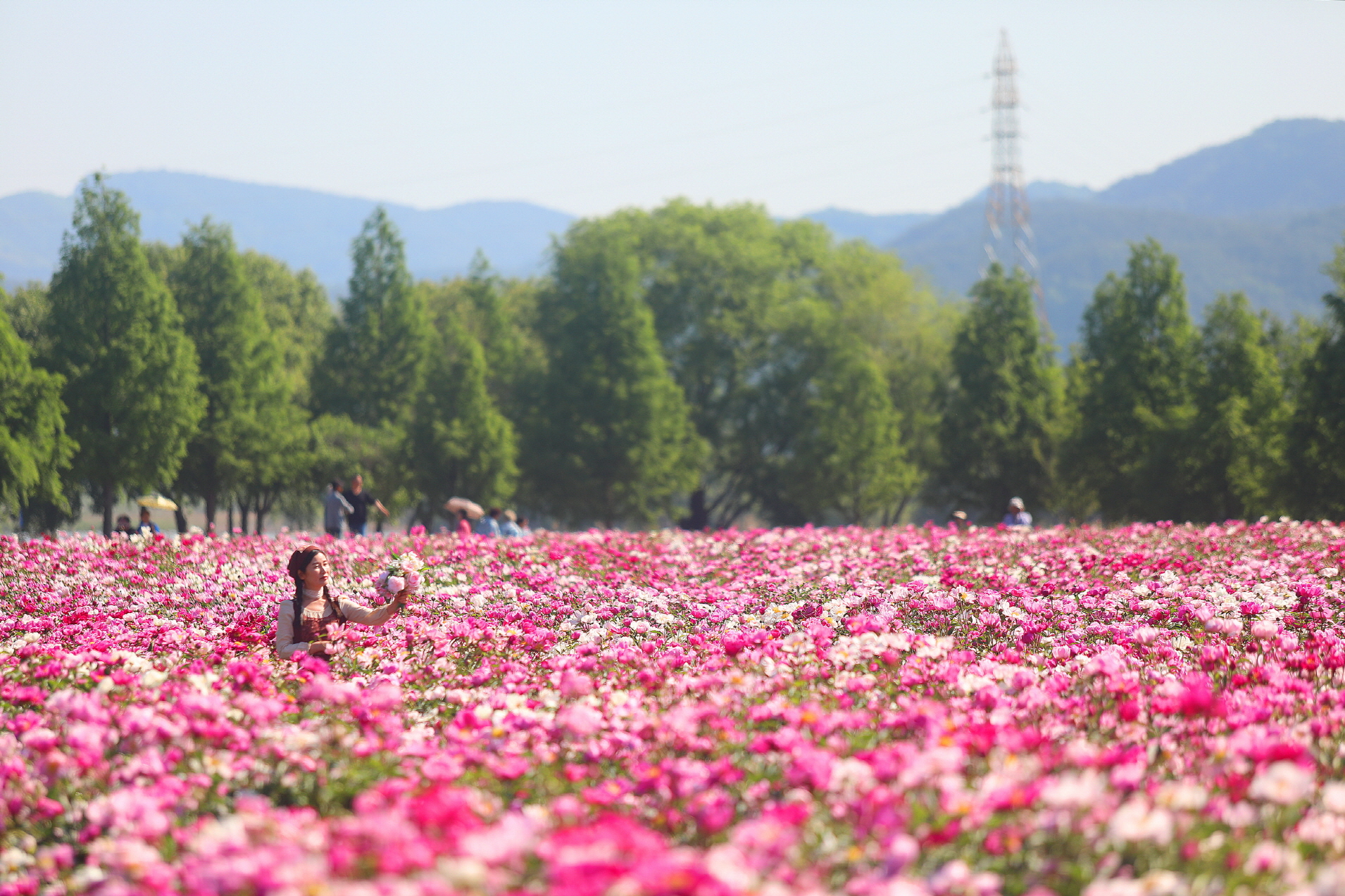 작약꽃속의 아름다운 모델분