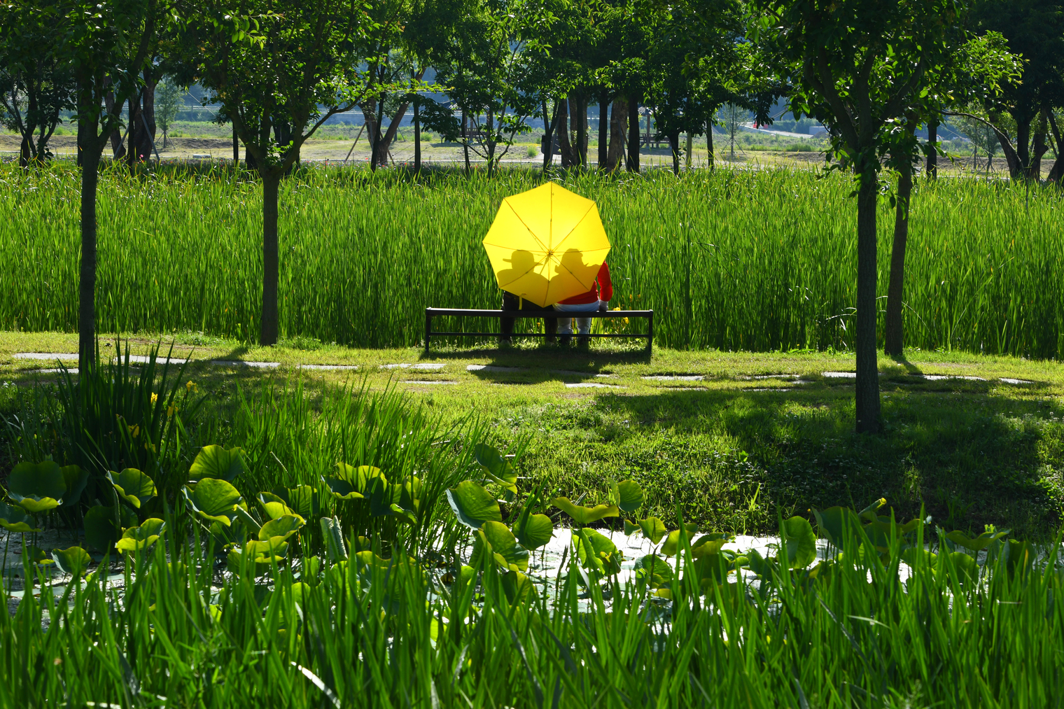 창포밭에서 다정한 데이트