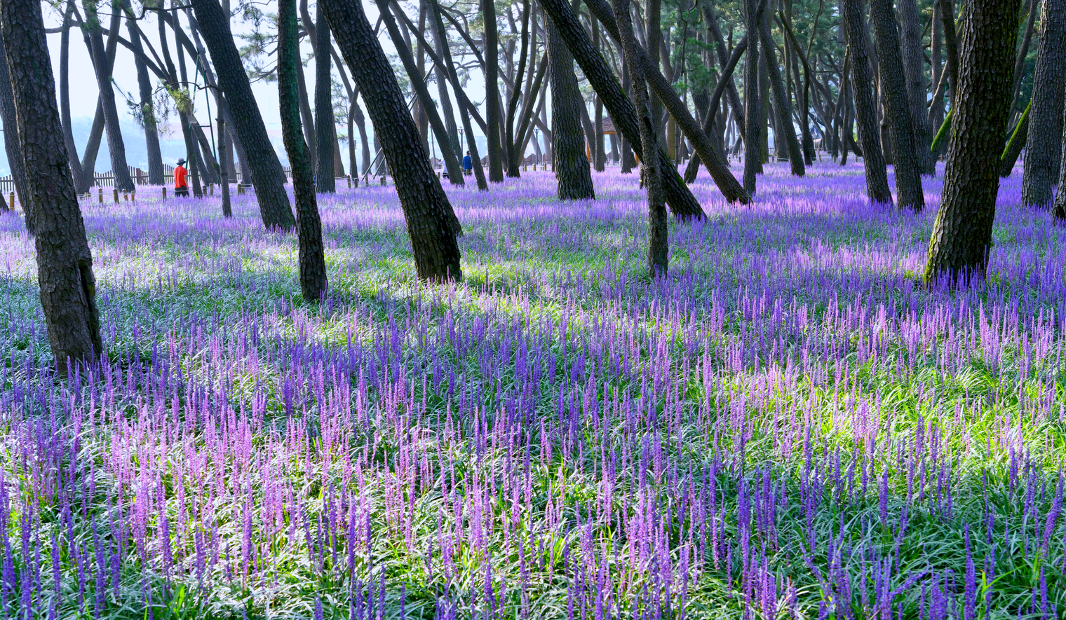 밀양시 삼문동 소나무 숲 속의 맥문동 꽃밭