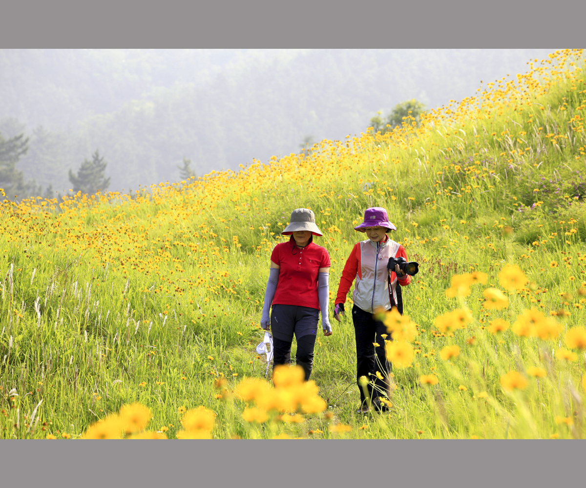 고분에 핀 금계국 사이로 여유를 부리는 여진사님들..