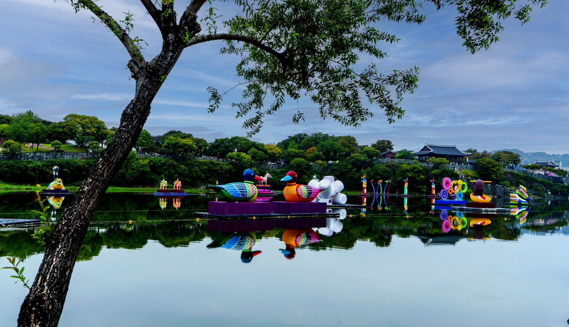 유등은 밤에 관람하고 촬영하면 아름답지만