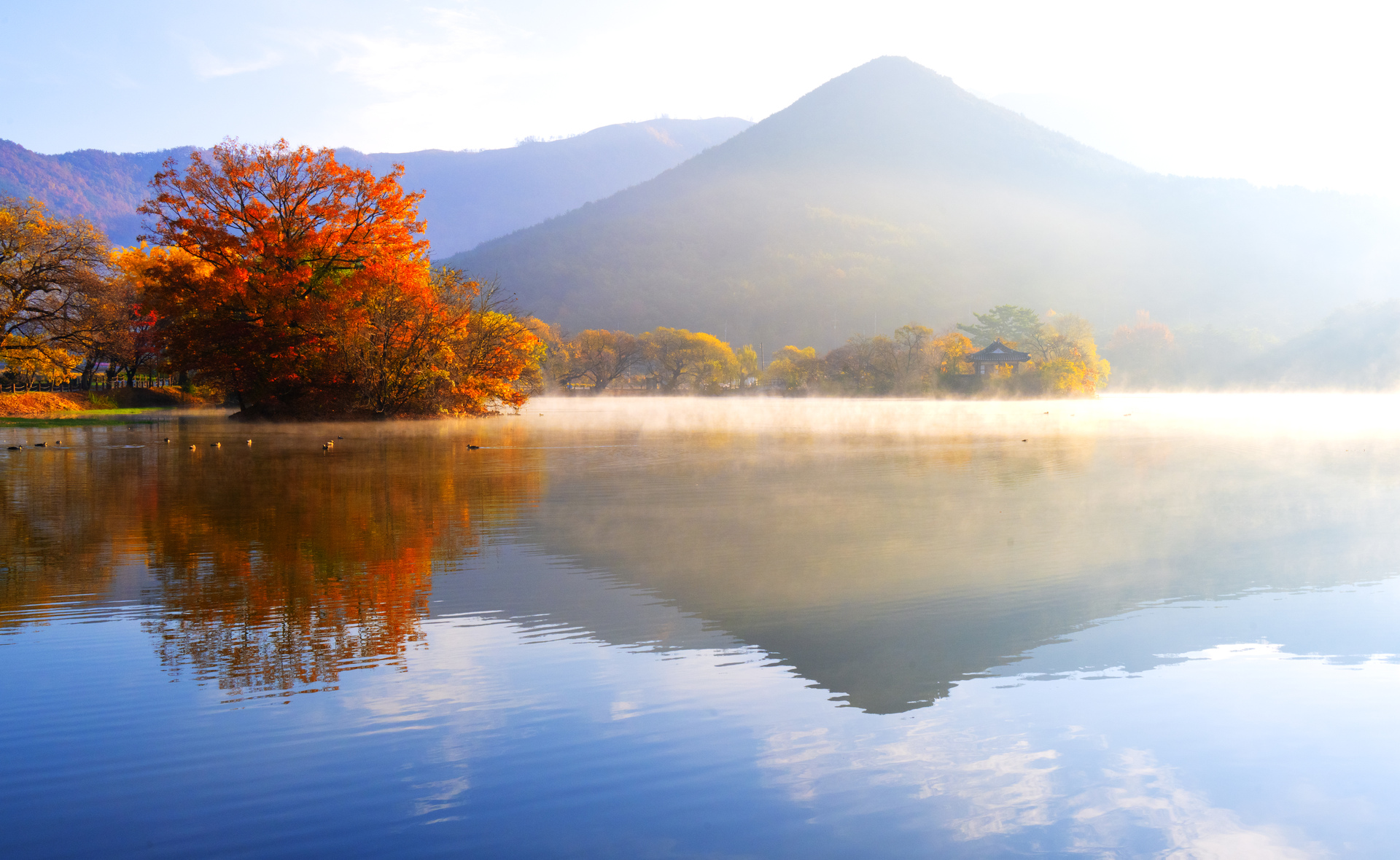 위양지도 가을색으로 변했다가