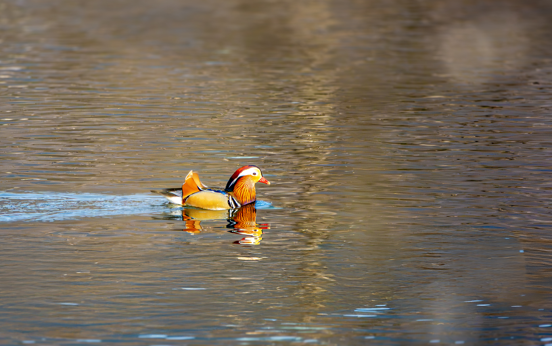 원앙새 무리중에 혼자서 어디로 가는지