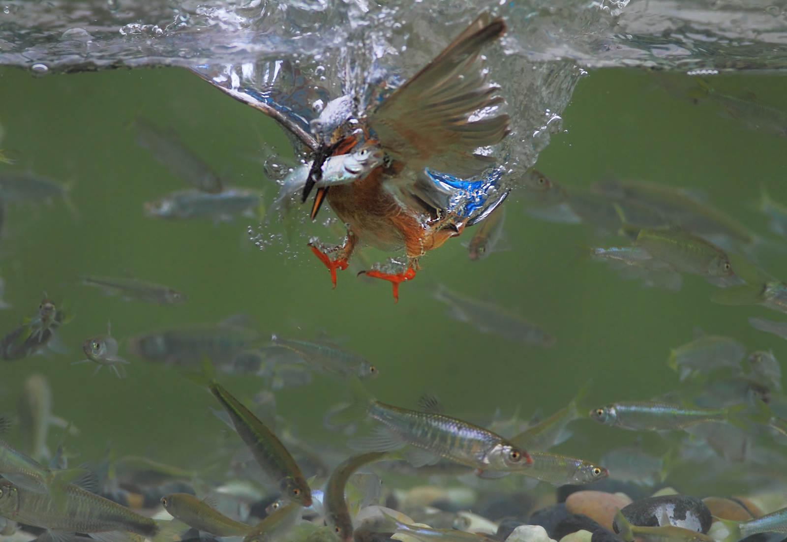 물속 피라미를 사냥중인 물총새숫컷....