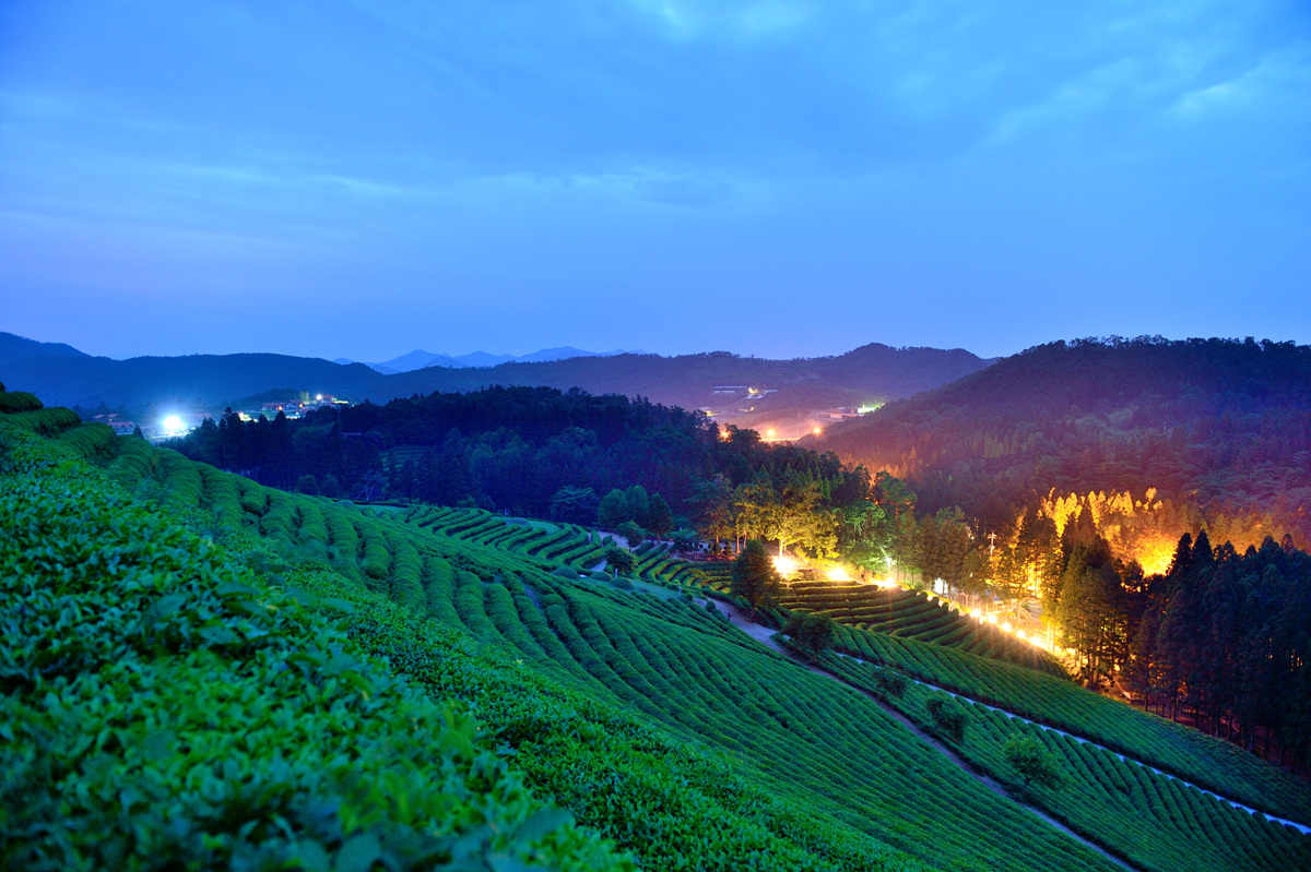 빛도없고 운해도 없고 가로등 불빛만 있는 다원의 아침.