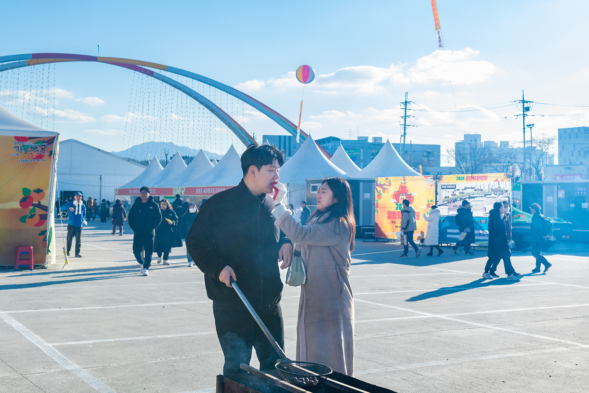 영동 곶감축제에서 군밤을 굽는 예비부부들의 정다운 모습인데