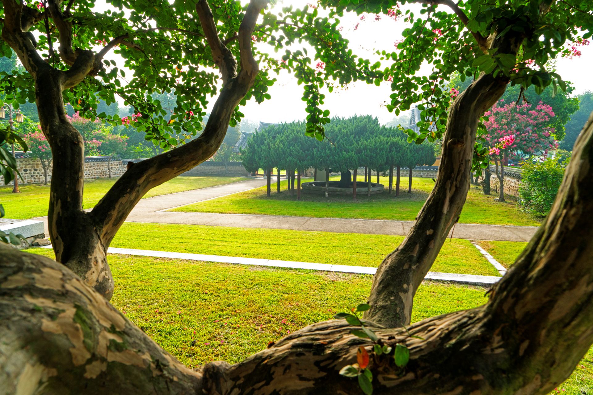 향나무를 배롱나무 사이로 ----