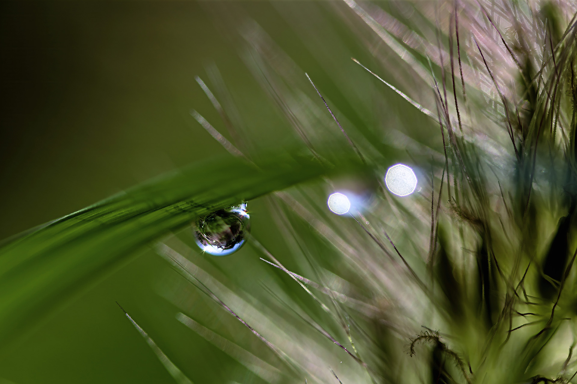 풀잎에 맺혀 있는 이슬방울