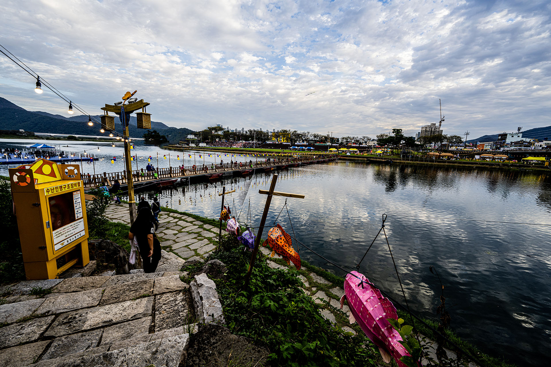 밀양강 위에 뱃다리(용천강다리)가 만들어지고 꽃불놀이와 어부들의 활동을그린 행사가 ---