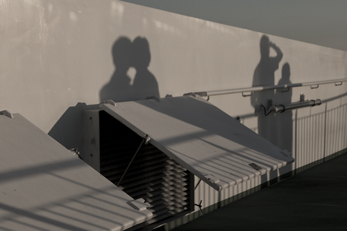 일몰을 보기위해 선상에 나온 연인들
