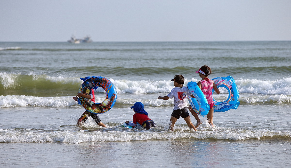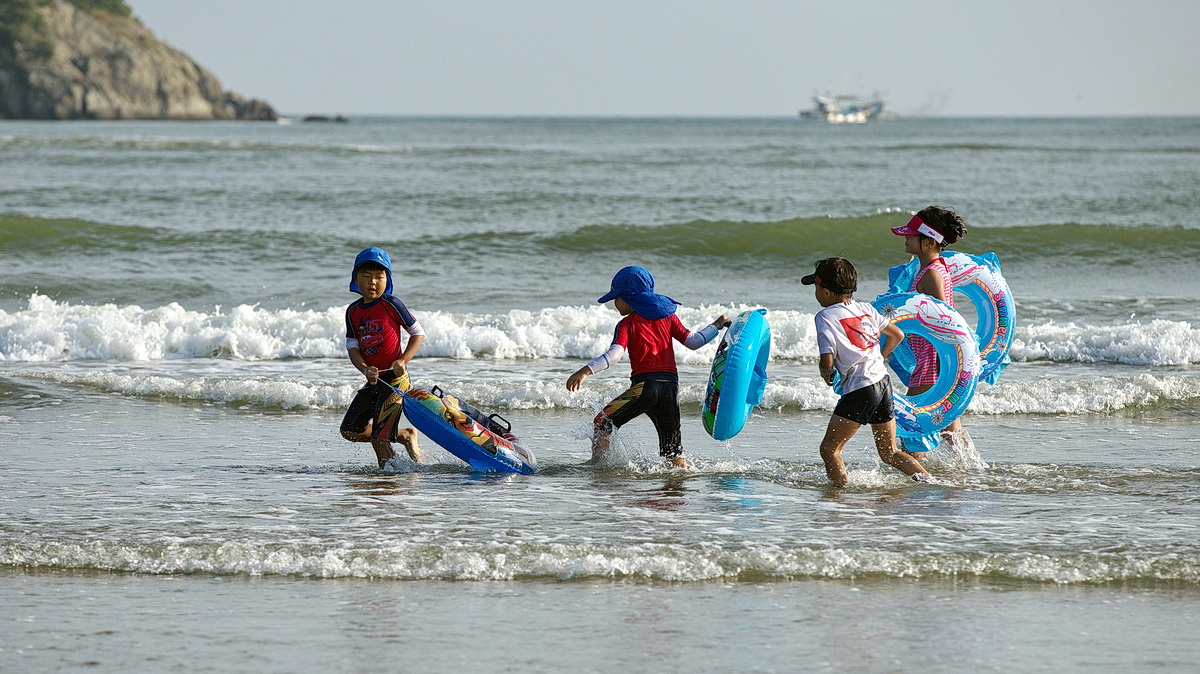 폐장 앞둔 다대포에서 마지막 물 놀이을 즐기는 아이들