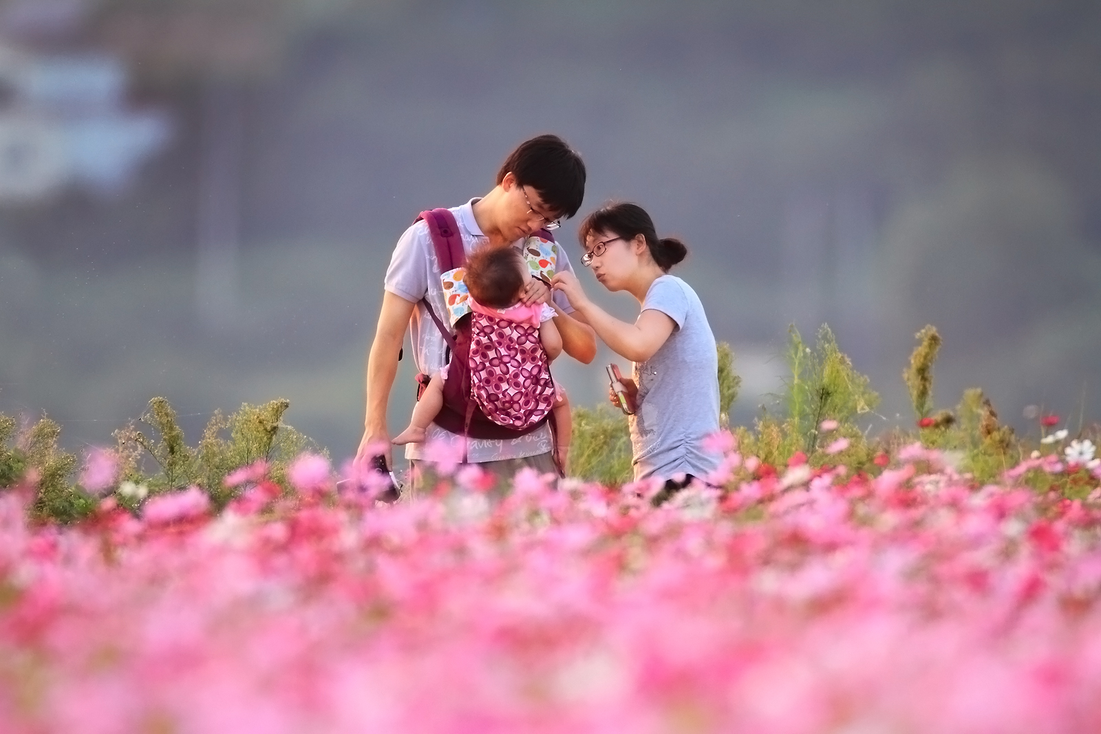 주남뚝방의 행복한 가족....