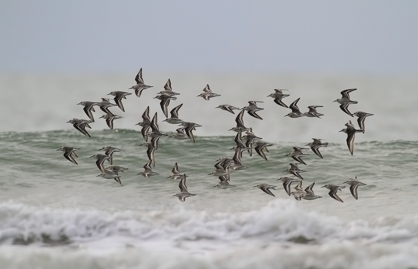 넘실대는 파도위를 날아가는 세가락도요....