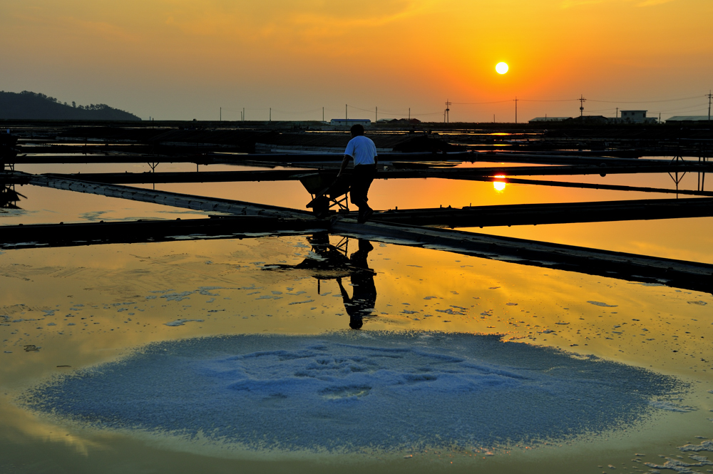 염부가 고된 하루일과를 마치기 직전