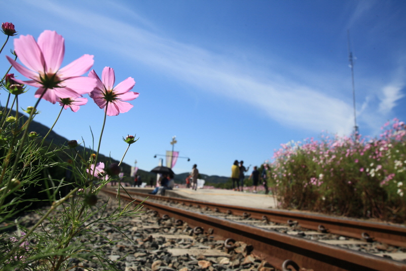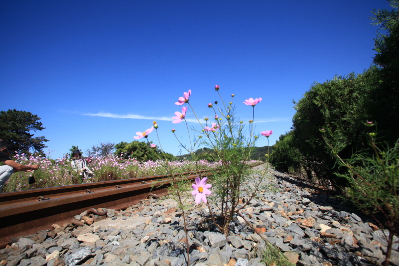 북천역 철로변에서