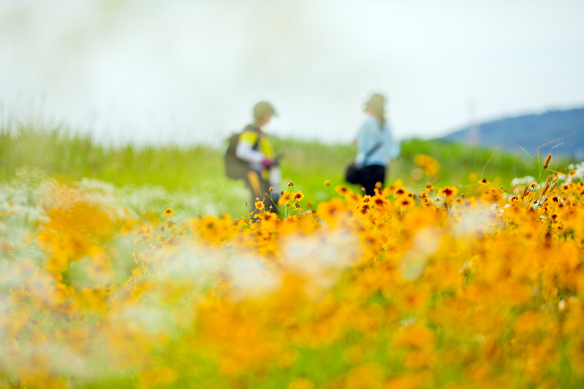 화사하고 아름다운 꽃 밭의 대화..