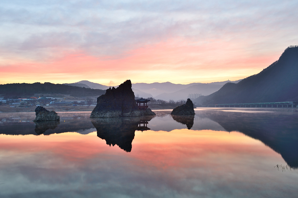장인어른 기일을 맞아 찾아간 도담삼봉의 여명입니다.