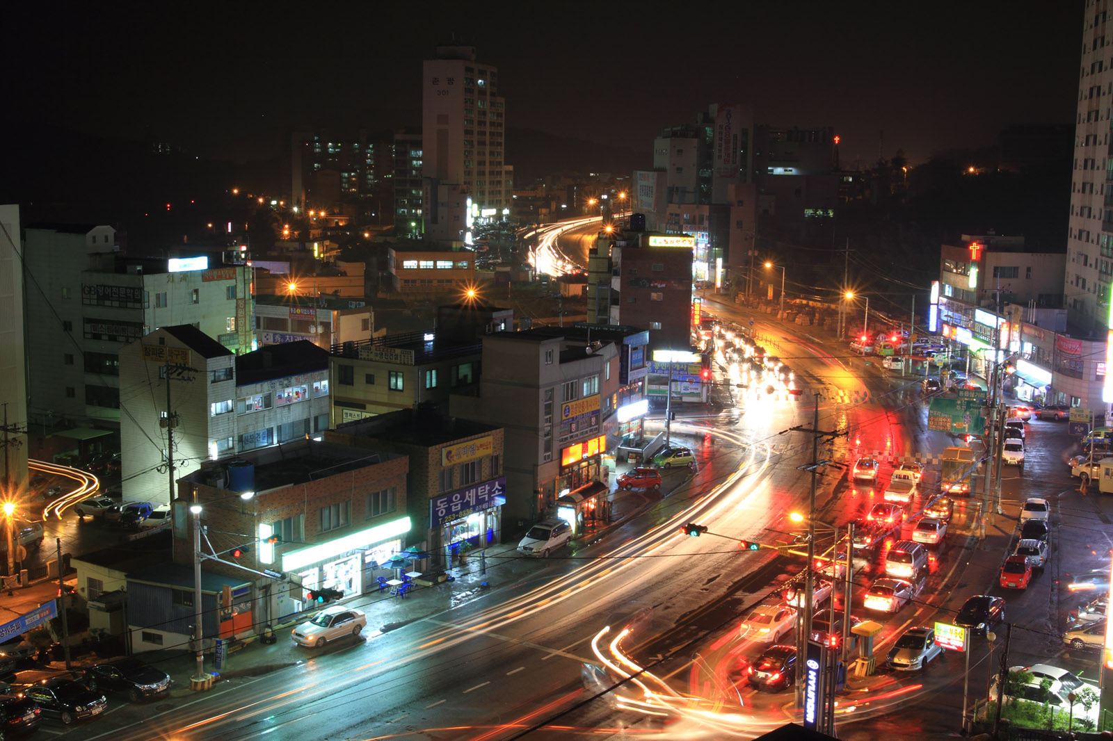 집에서 내려다본 비내리는 국도14호선............