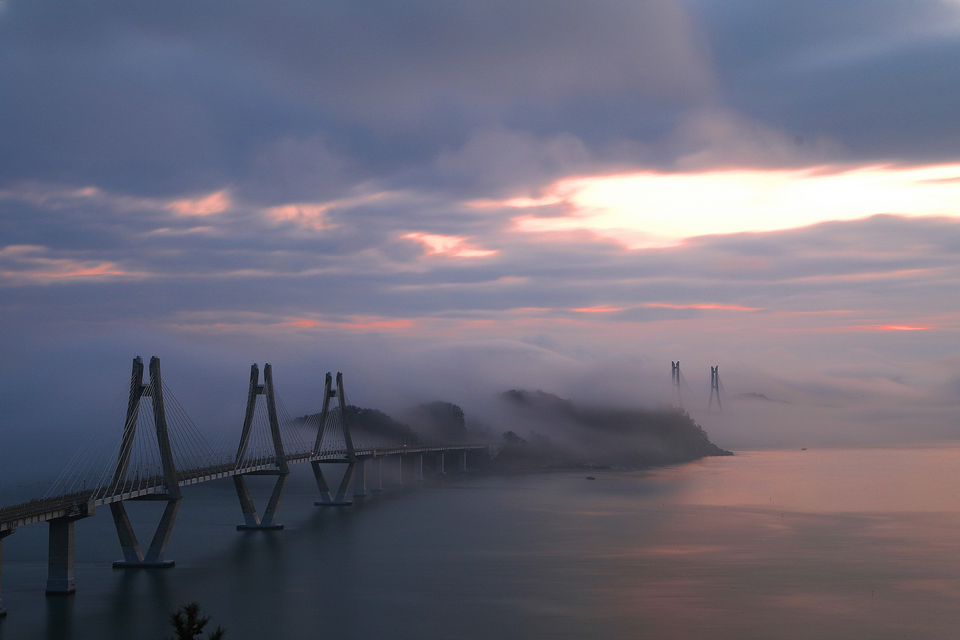 거가대교를 타고넘어가는 바다해무가 장관입니다.^^