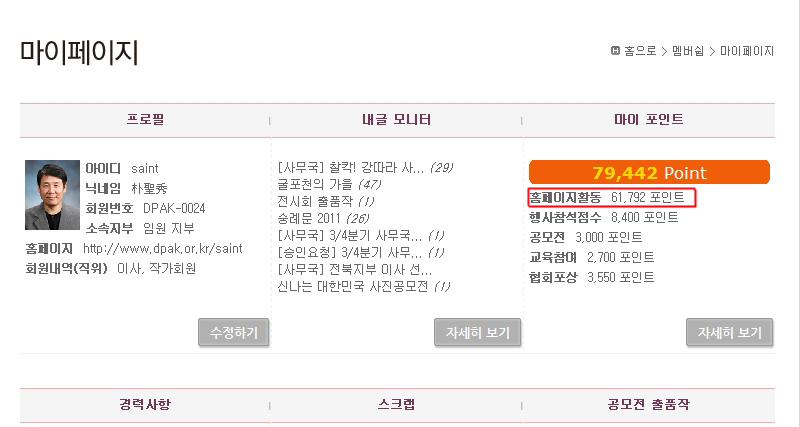 * 개인별 확인은 mypage -> 마이포인트- 홈페이지활동 포인트를 확인하시면 본인의 점수를 확인할수있습니다.