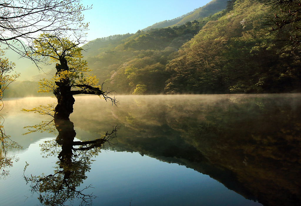 초여름 아침 주산지 풍경 입니다