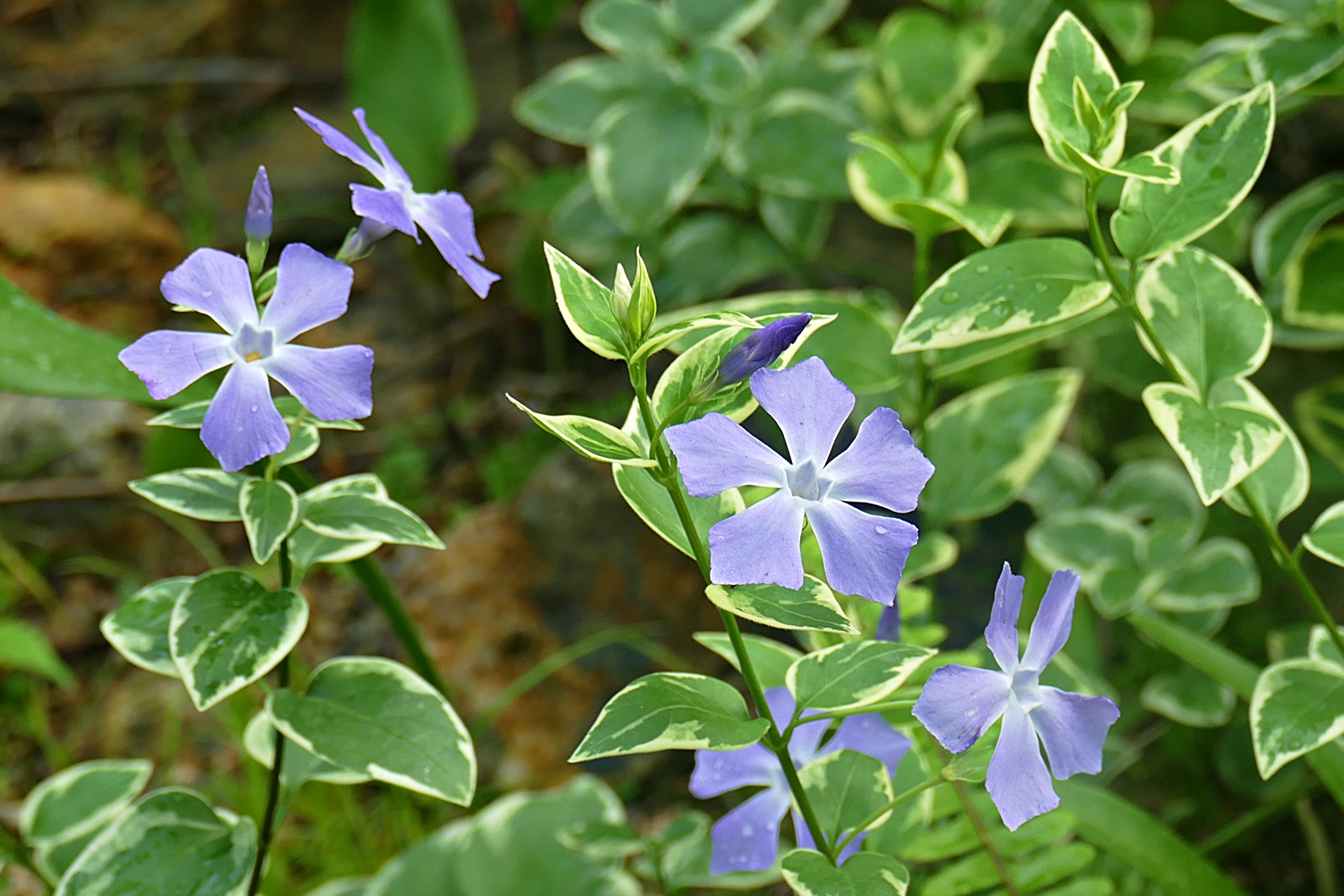 온실에 피어있는 지중해 연안이 원산지인 무늬빈카...