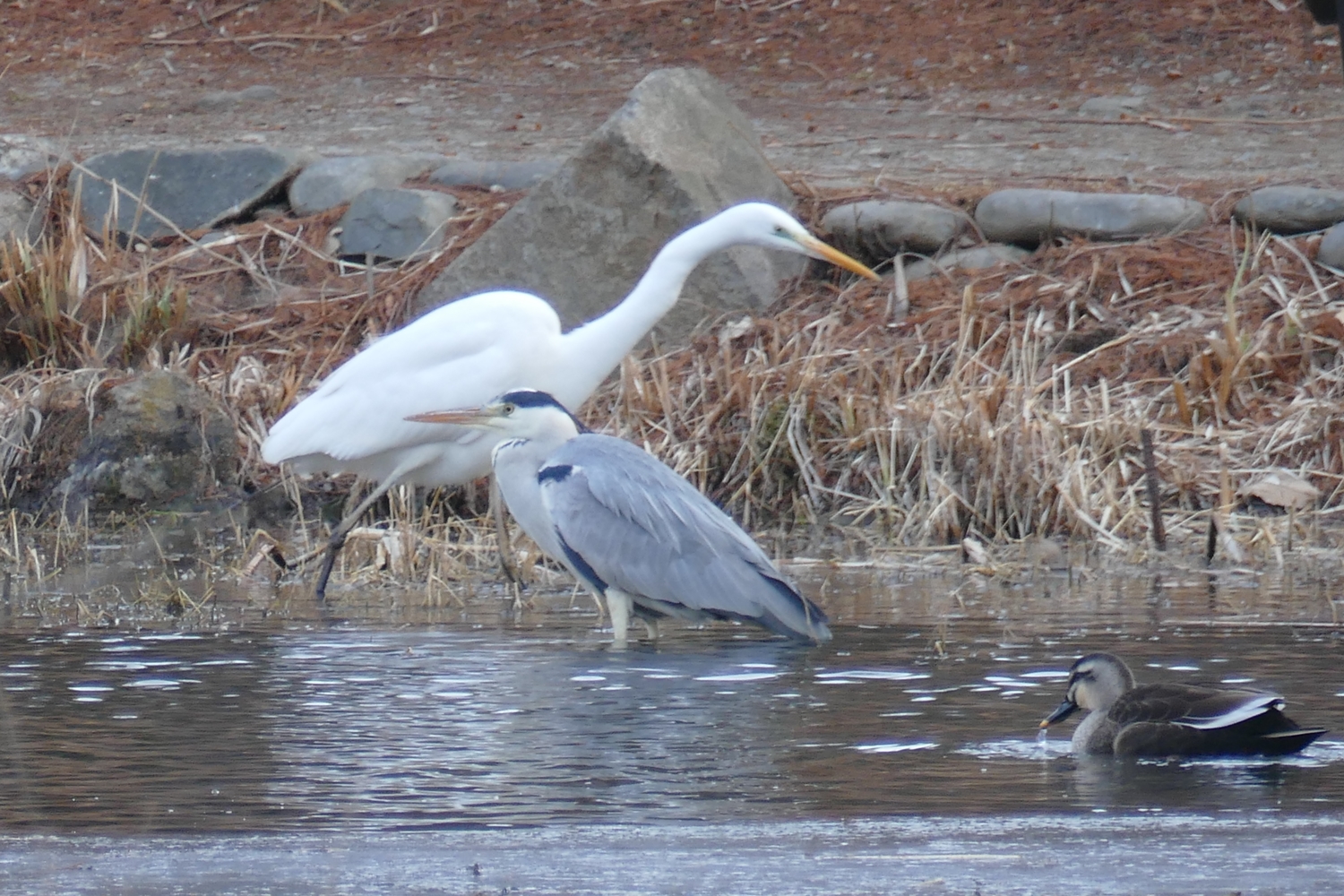 대백로,왜가리,흰뺨검둥오리 공생...