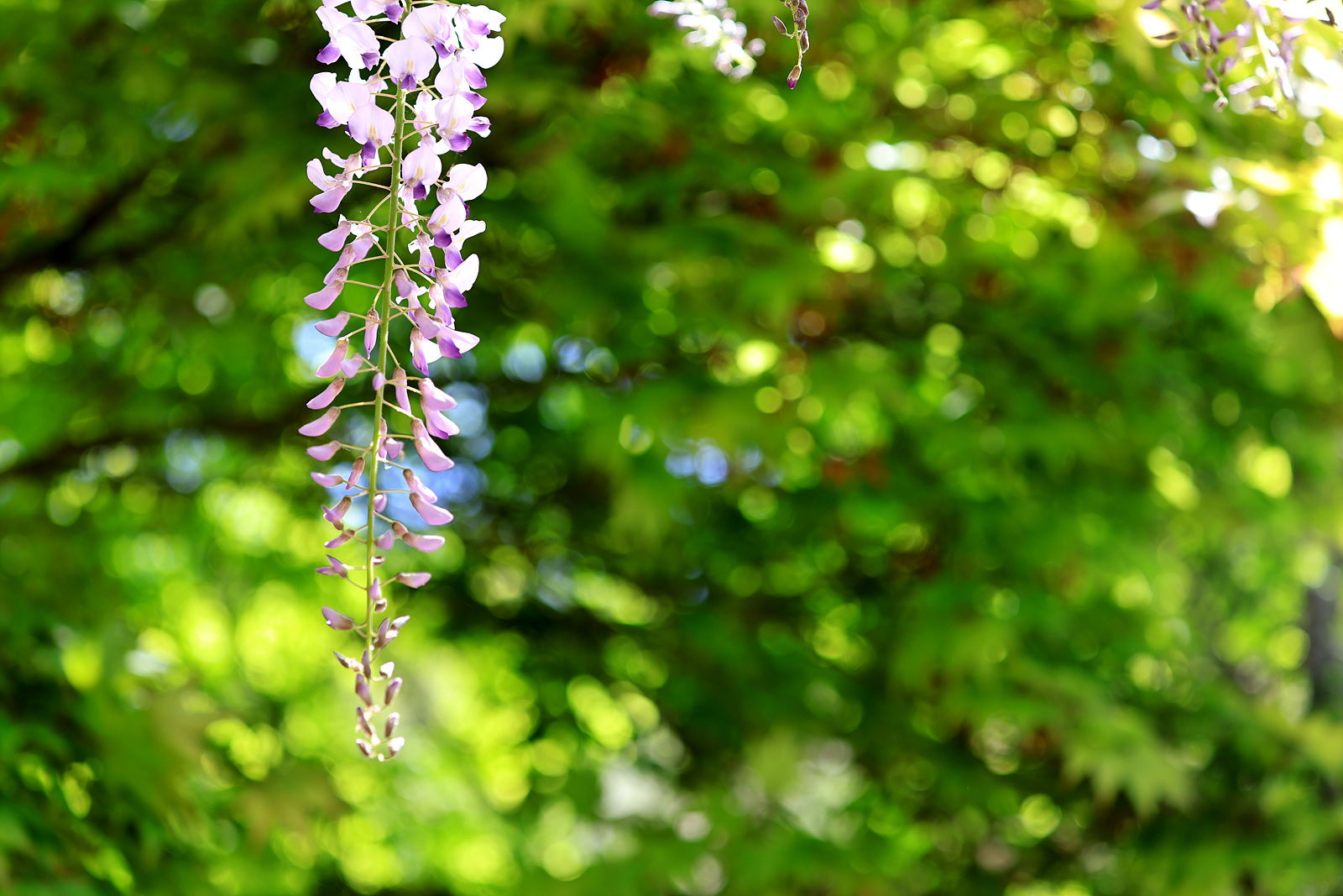 한줄기 등나무꽃이 빛을 받았네요